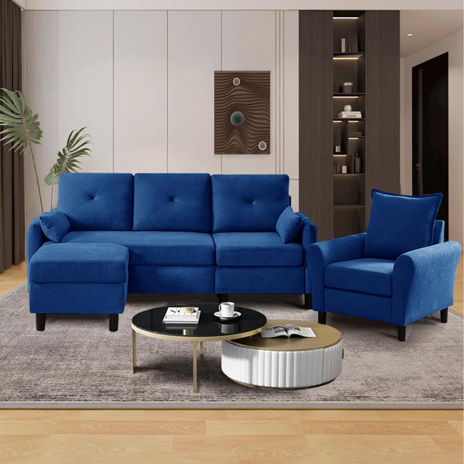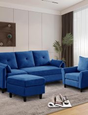 Upgrade your living space or office with the 4 Seater Sofa Set with Ottoman-Blue, and enjoy years of comfort and style.
