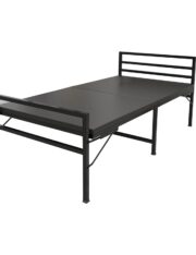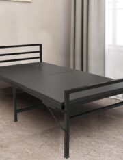 Sleek Modern Design: This foldable bed showcases a chic black metal frame with sharp, clean lines, making it an excellent fit for modern and minimalist spaces.