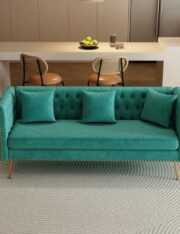 Wrapped in a stunning teal velvet fabric, this sofa is sure to become the focal point of any room. The square arm design adds a touch of sophistication, while the plush cushions provide the perfect combination of support and softness for hours of relaxation.