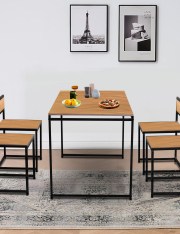Urban Decor – Metal and Engineer Wood Dining Table Set Black 1 Table and 4 Stool