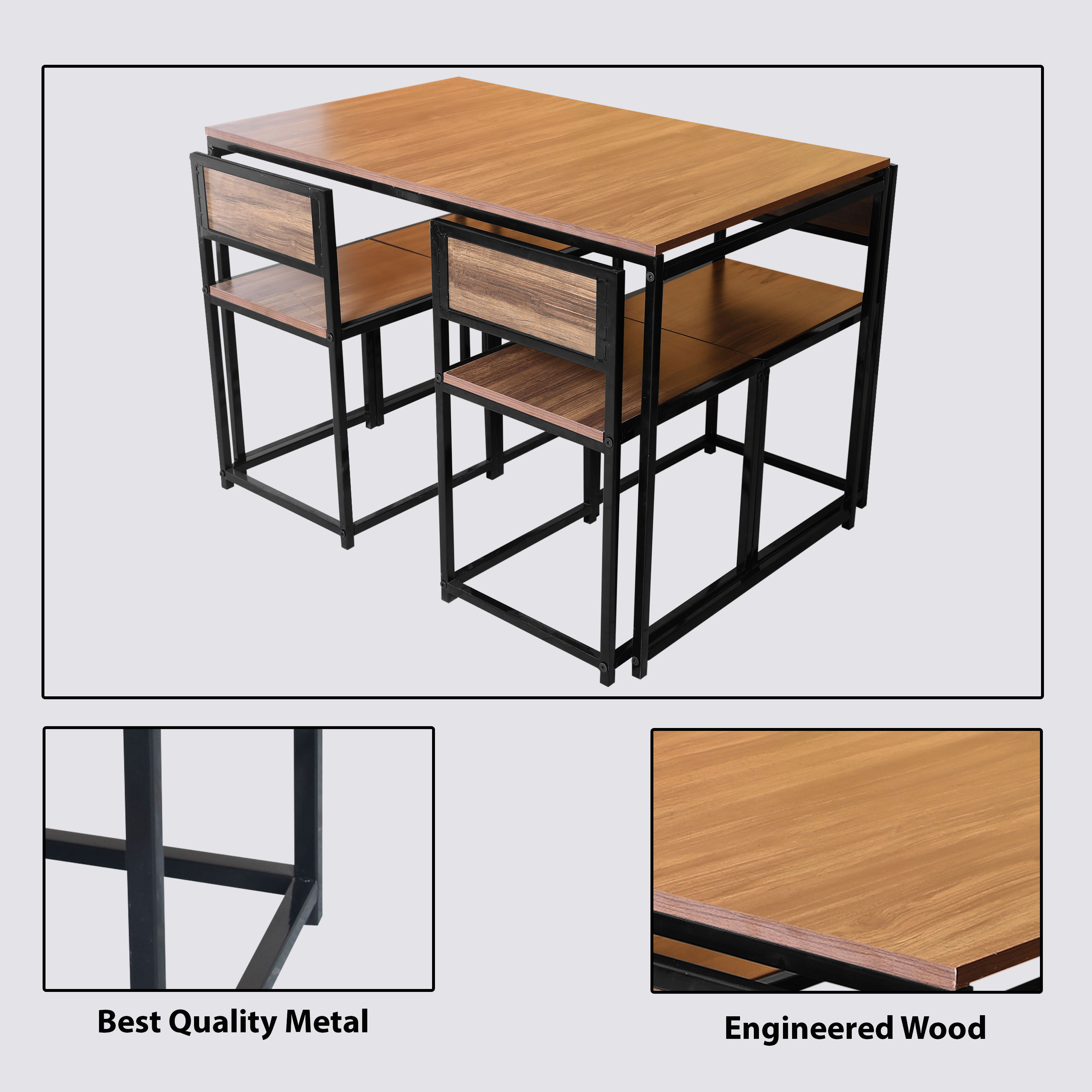 Be the first to review “Urban Decor Solid Wood 4-Seater Dining Set | Iron Frame Wooden Top Dining Table with Four Chairs” Cancel reply