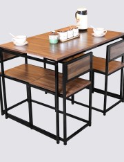 Crafted for elegance and strength, this Solid Wood 4-Seater Dining Set features a durable iron frame and a smooth wooden top. Complete with four comfortable chairs, it’s perfect for modern and compact dining spaces.